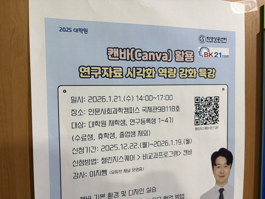 대학원생 대상 Canva 강의, 연구자료 시각화 교육, 학과·연구실 맞춤형 특강이 필요하시다면 워크스마트에 문의해 주세요.