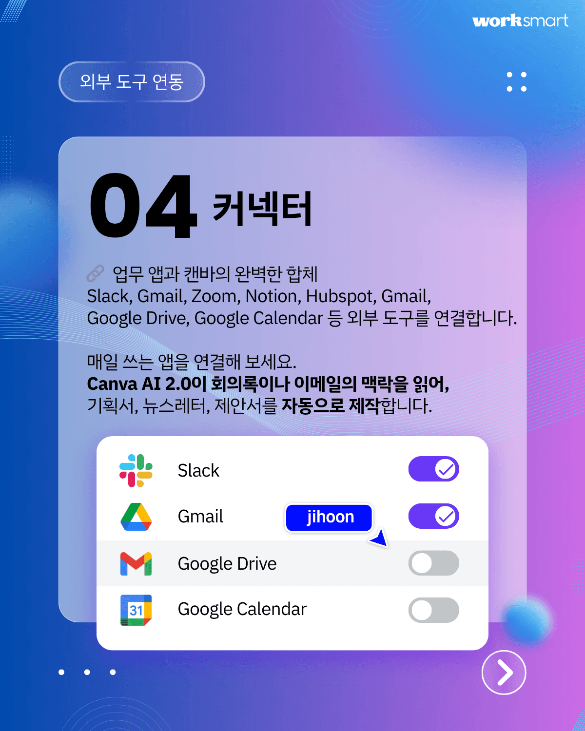 4. Slack, Gmail, Notion, Zoom과 연결됩니다: Connectors