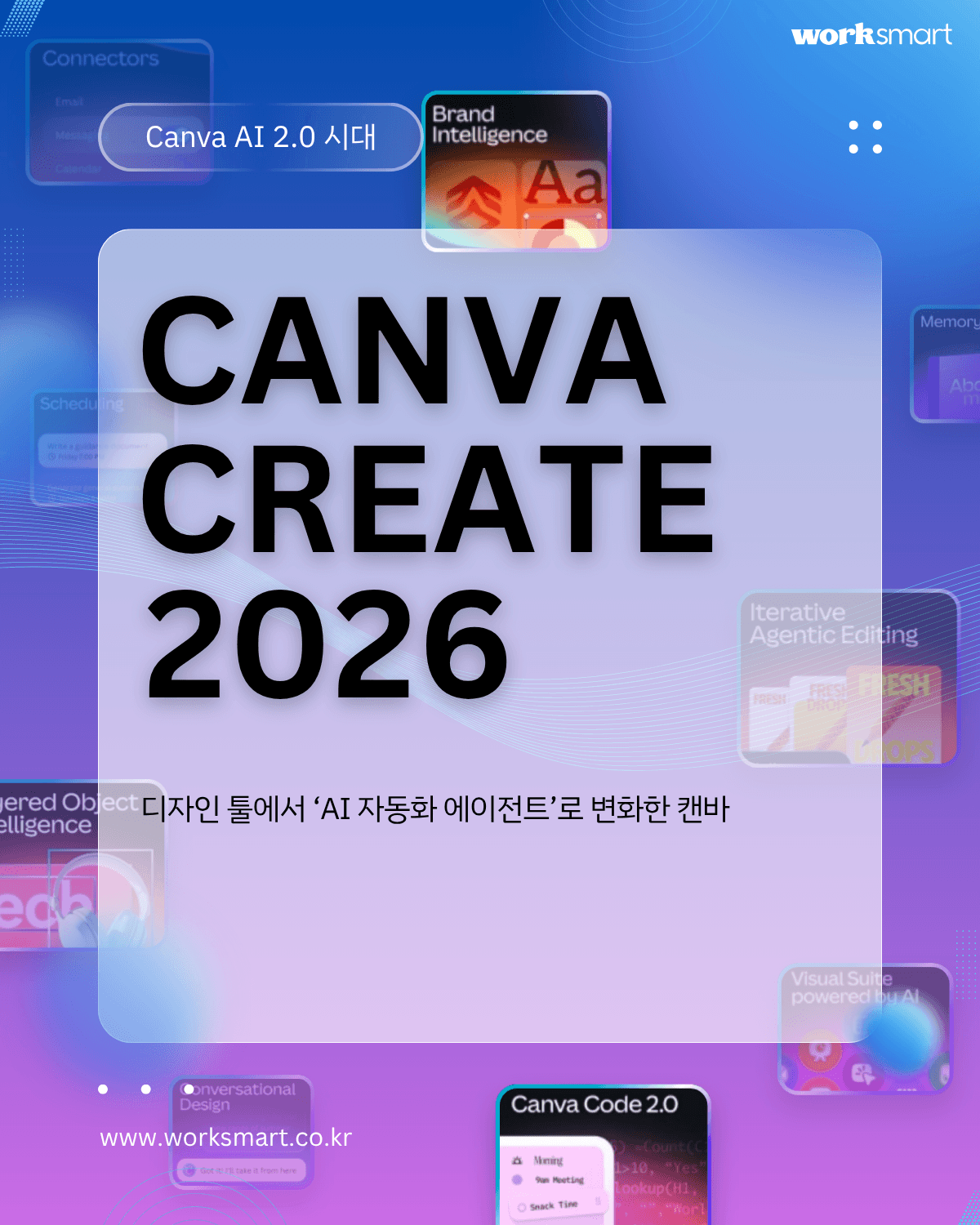 Canva AI 2.0은 디자인 생성 기능을 넘어, 자동화, 외부 업무 도구 연동, 브랜드 관리, 코드 편집, 데이터 시각화까지 하나의 플랫폼 안에서 연결하려는 방향을 분명하게 보여주고 있습니다.