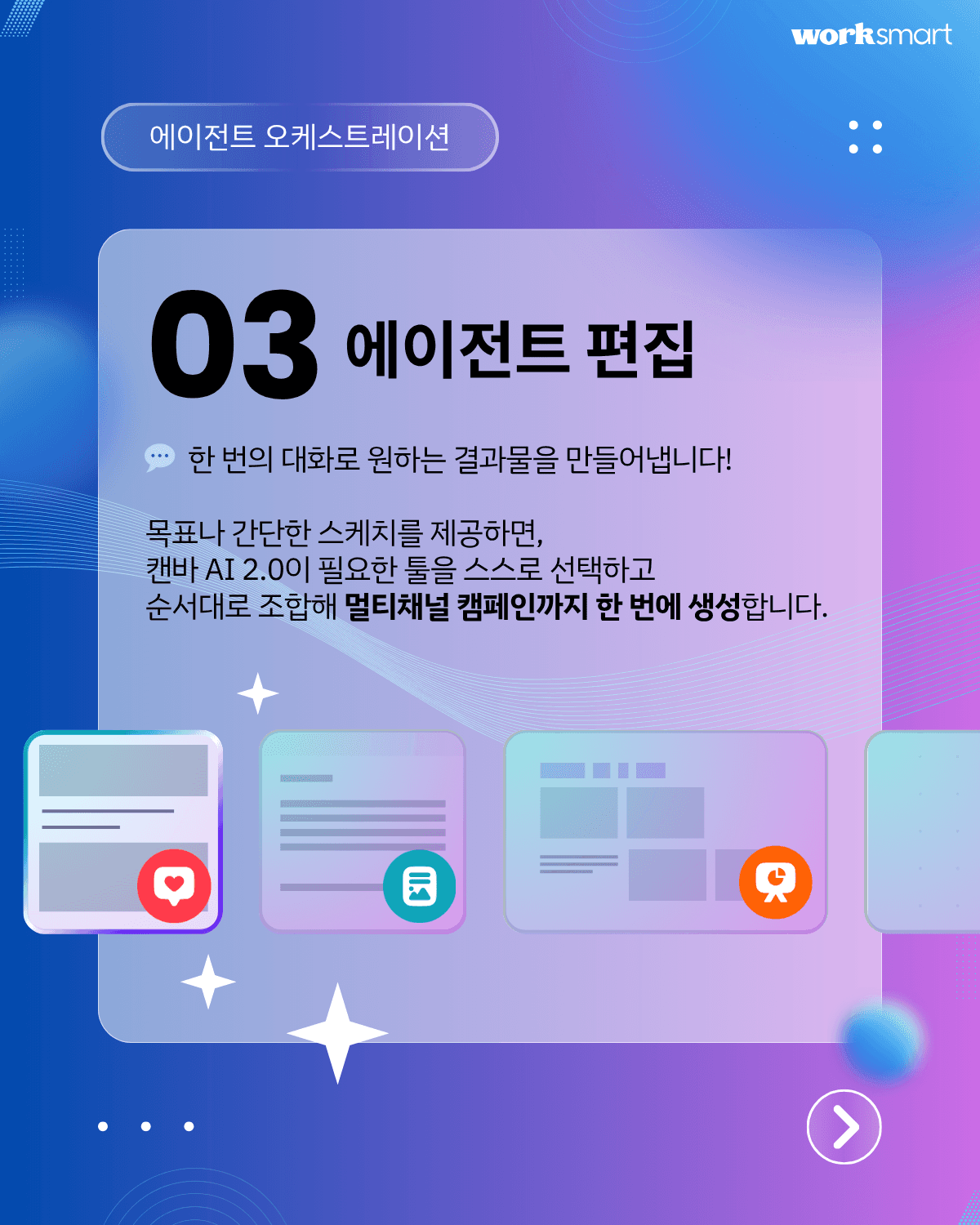 카드뉴스, 발표 자료, 제안서 초안을 말 한마디로 시작할 수 있습니다. 아이디어를 설명하는 것만으로 초안 제작 속도가 달라집니다.
