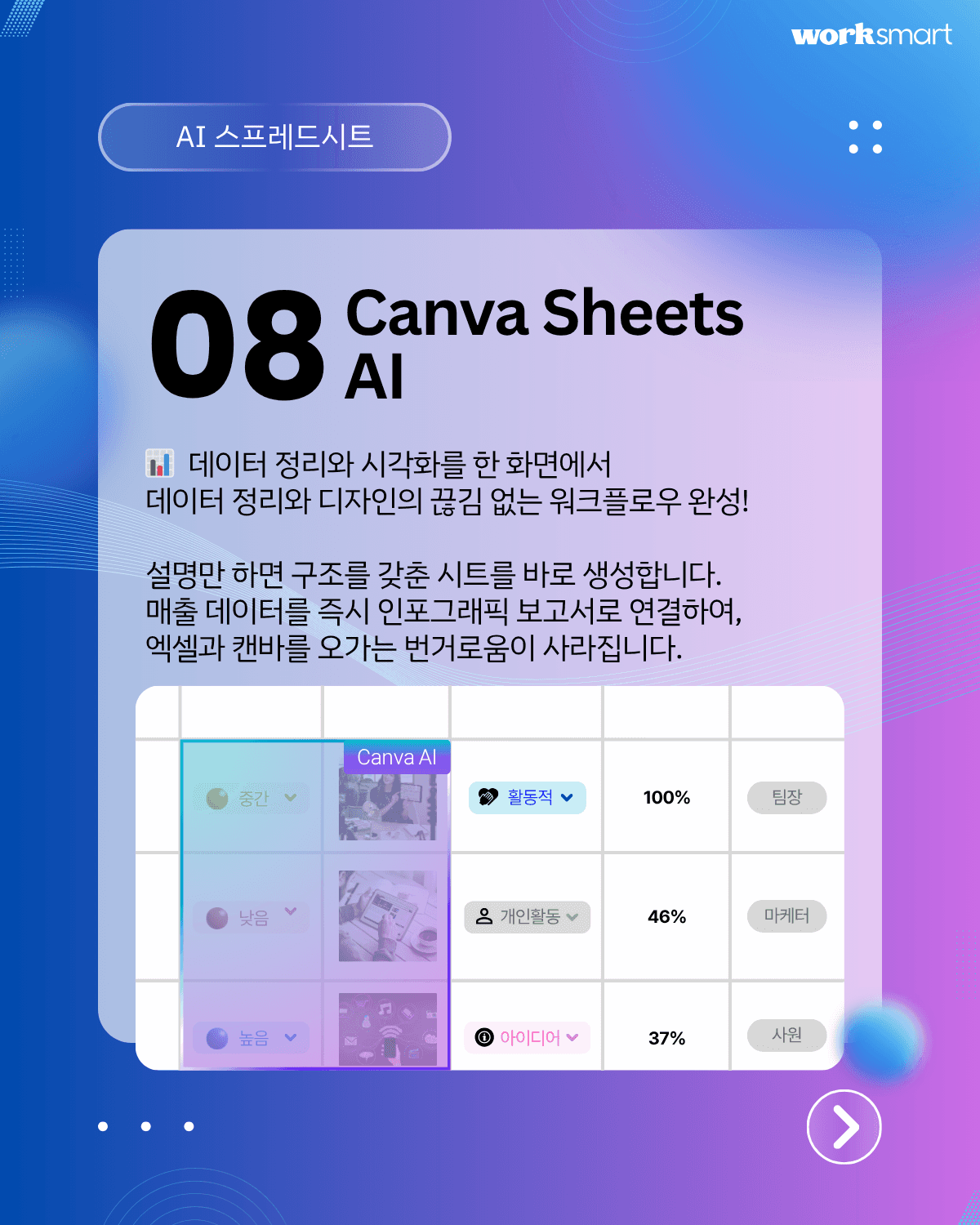8. 표를 인포그래픽으로 바꿔줍니다: AI Spreadsheets