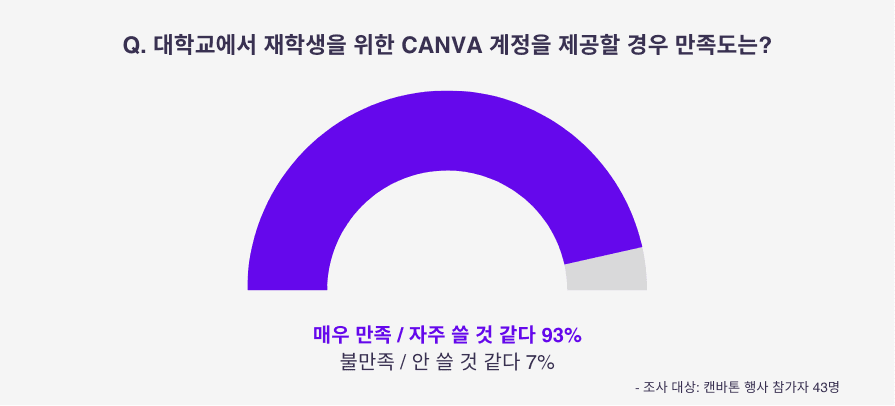 학교가 공식 캔바 계정을 제공하면 만족할 것 같다는 응답도 93%에 달해