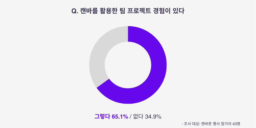 또한 65.1%는 Canva를 활용한 팀 프로젝트 경험이 있다고 답해,